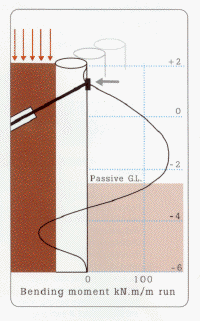 Factors of safety are computed according to standard codes of practice while wall displacements and bending moments are calculated by a finite element analysis which models the actual sequence of construction of the wall. Earth pressures are calculated automatically from basic soil properties.